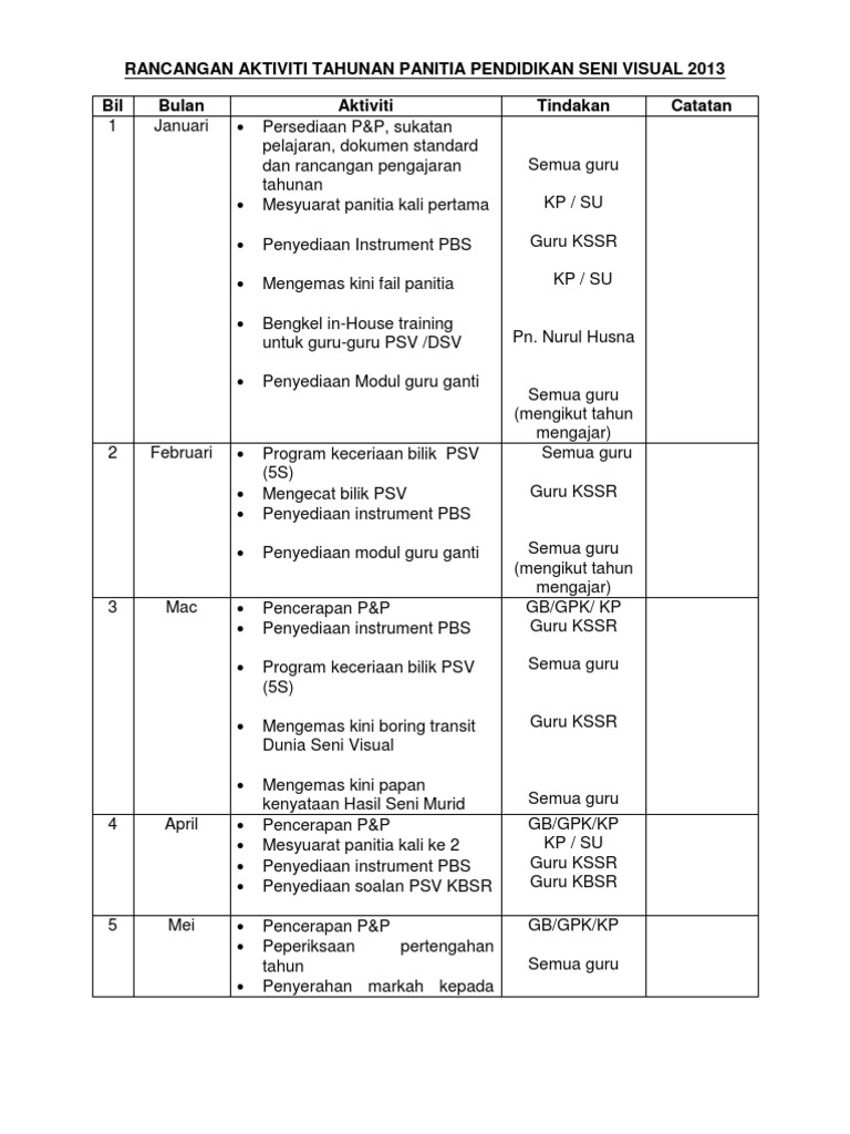 Rancangan Aktiviti Tahunan Panitia Pendidikan Seni Visual 2013 Pdf