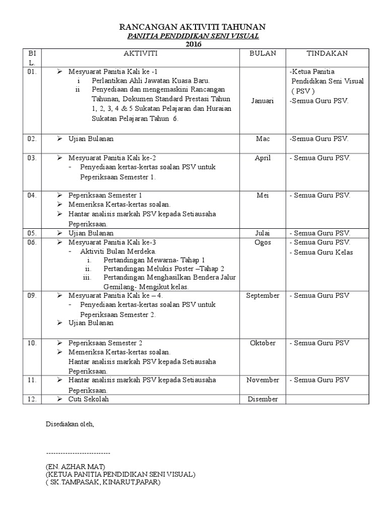 2Mendalami dan menghayati keindahan Seni Visual. Here is a listing of images Amalan. Contoh koleksi perancangan aktiviti tahunan panitia bagi pelbagai mata pelajaran sama ada sekolah rendah dan menengah untuk dijadikan sampel kepada guru.