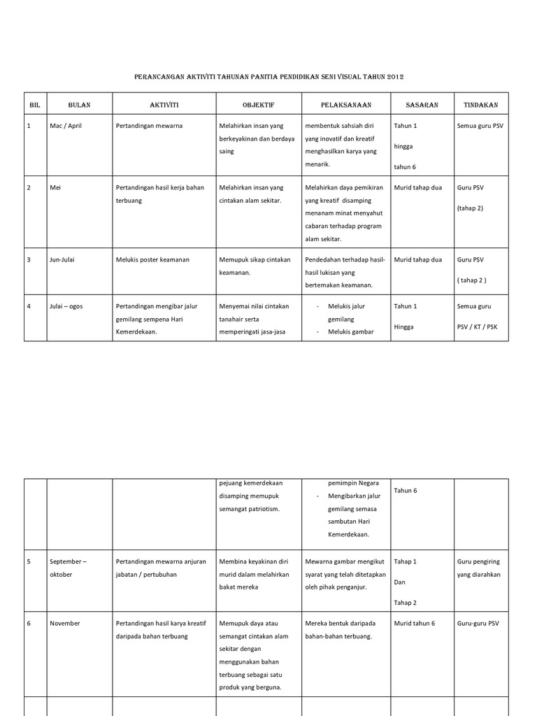 Perancangan Aktiviti Tahunan Panitia Pendidikan Seni Visual Tahun 2012 Pdf